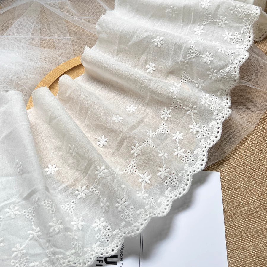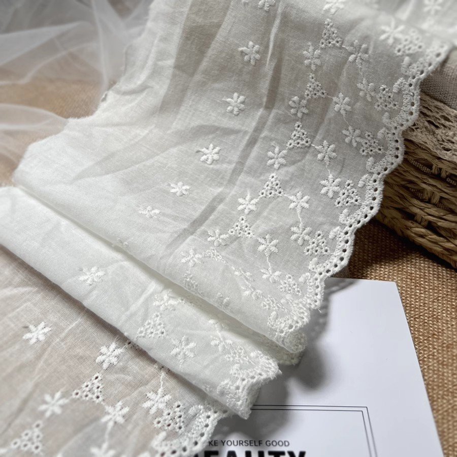 13.5cm Cotton Embroidered Lace Trim – Wide Eyelet Floral Fabric Border for Dresses, Tops, Skirts & DIY Sewing Crafts