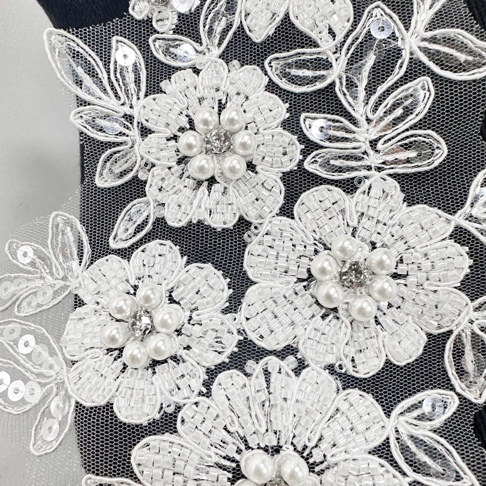 3D Floral Beaded Lace Appliqué Set (Approx. 29 × 10 cm)