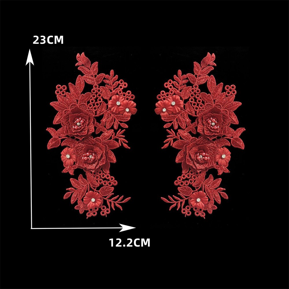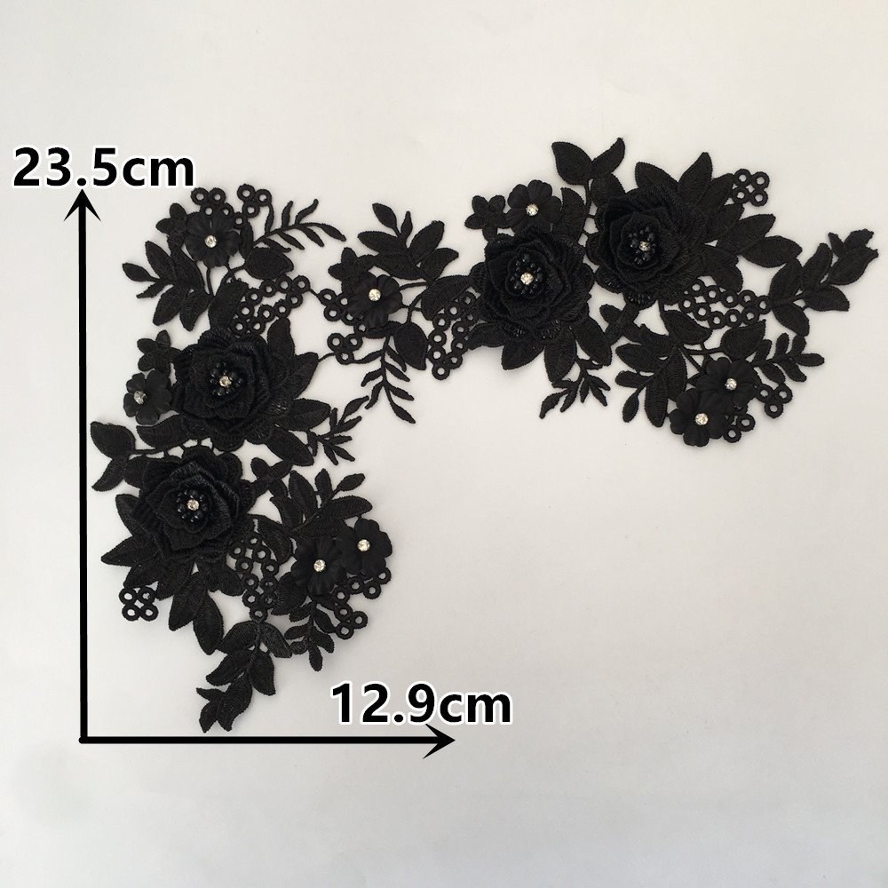 This rose appliqué is ideal for designers seeking a romantic yet structured floral element that draws attention without overpowering the garment.