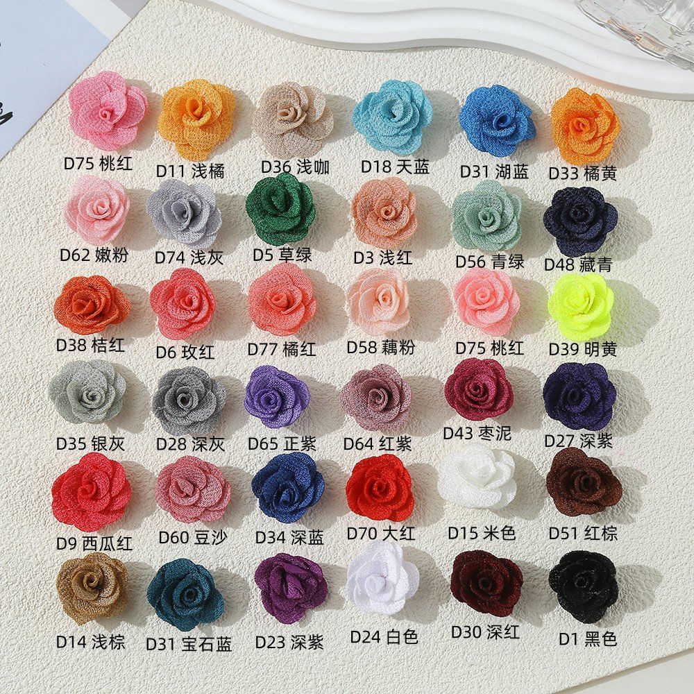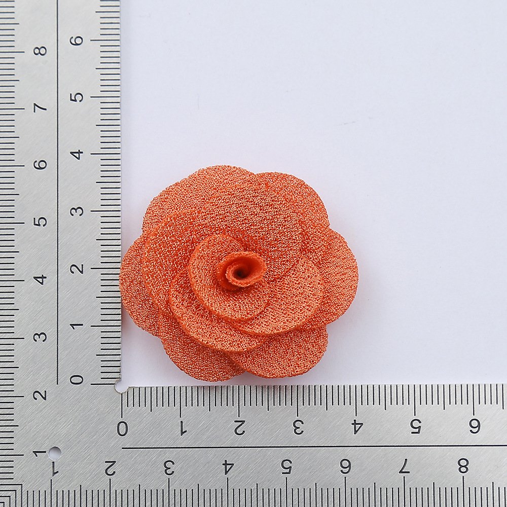 Rose-inspired camellia flower appliqué with layered fabric petals
