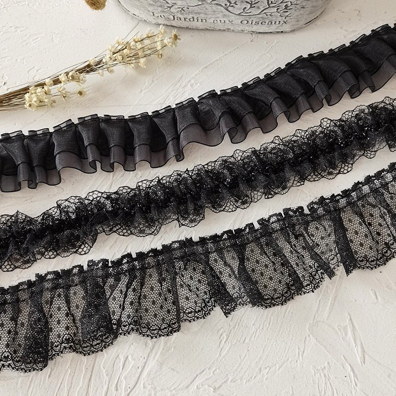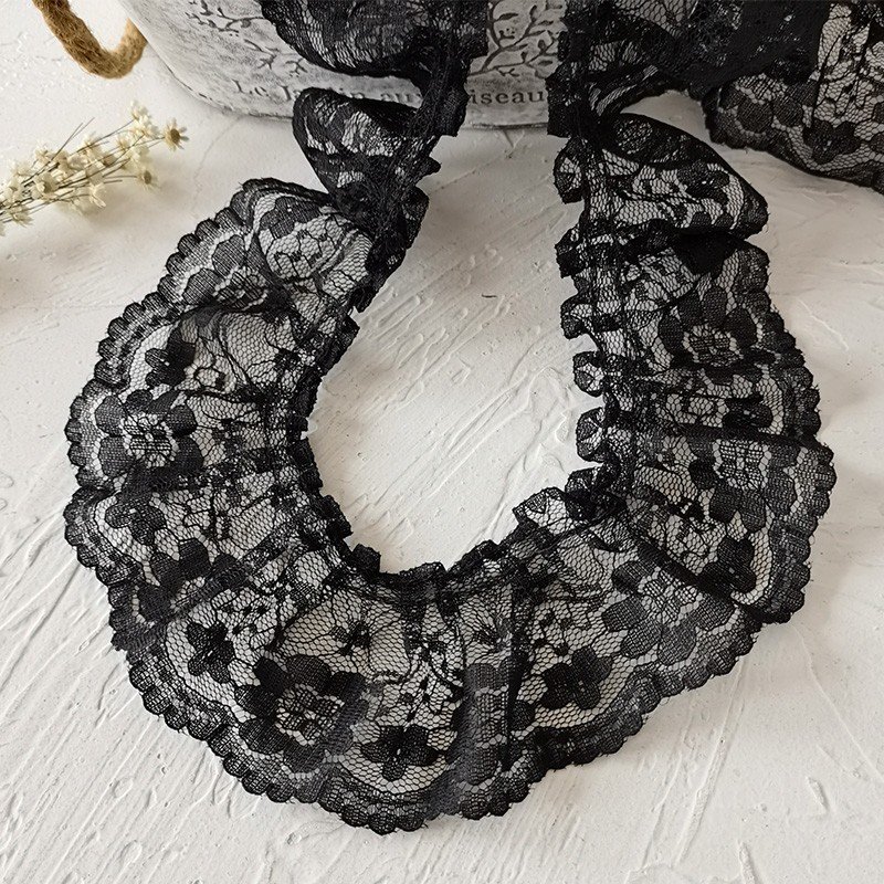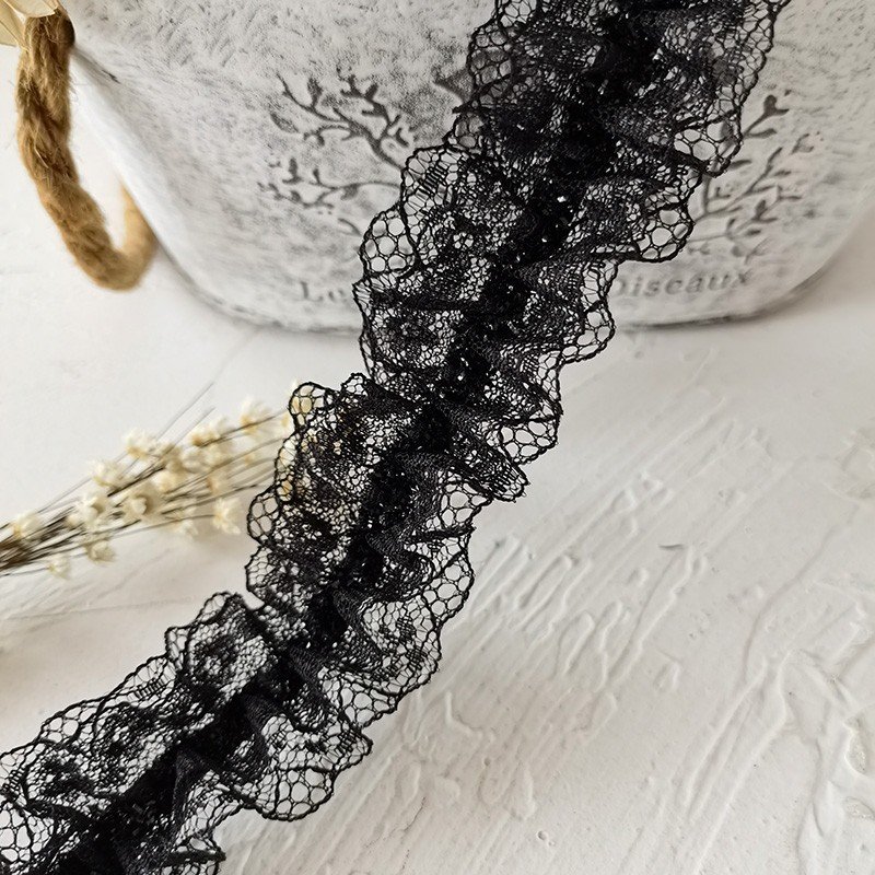 Enhance your fashion designs with this beautiful black organza ruffled lace trim, perfect for adding elegance to your dress hems, collars, and skirts. Made from high-quality organza mesh, this delicate lace features soft ruffles that create a sophisticated and textured finish. Whether you’re working on wedding dresses, party skirts, or casual tops, this lace trim will elevate your garments to a whole new level of style. 🌸✨