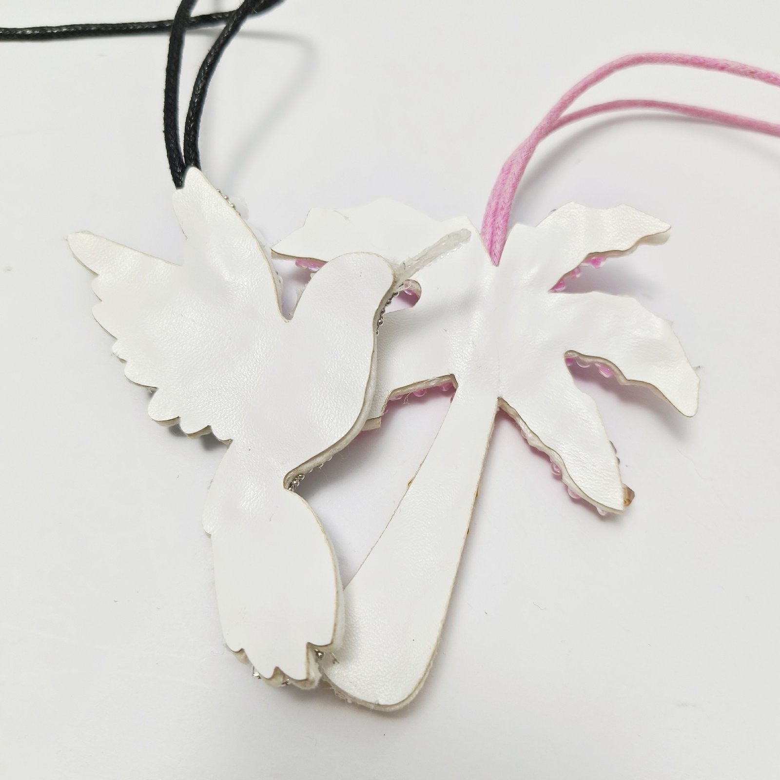🐦 Birds – Elegant bird pendants in white and black embroidery, stylish and unique.