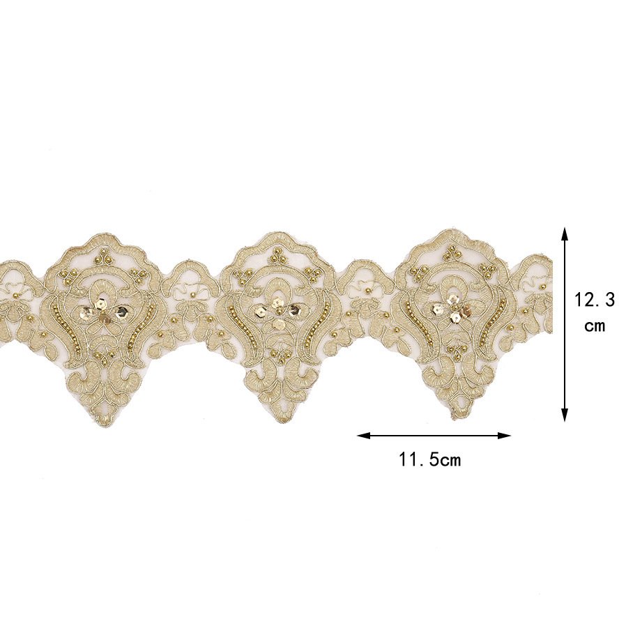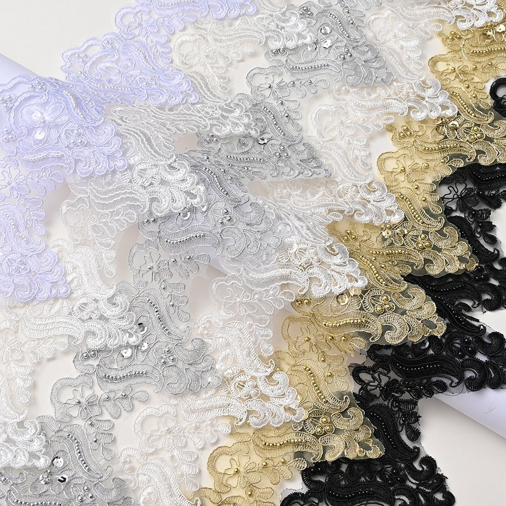 This heavy sequin beaded bone lace trim is crafted with exquisite detail, combining sparkling sequins and delicate beads on structured lace for a luxurious, glamorous look. Designed for bold fashion statements, this lace trim is widely used in haute couture, evening gowns, and stage costumes. Whether you’re designing for a wedding, a runway collection, or a DIY performance outfit, this lace brings unmatched elegance and radiance. Loved by European and American sewing communities, it’s often found in bridal studios, designer workshops, Etsy stores, and handmade craft fairs.