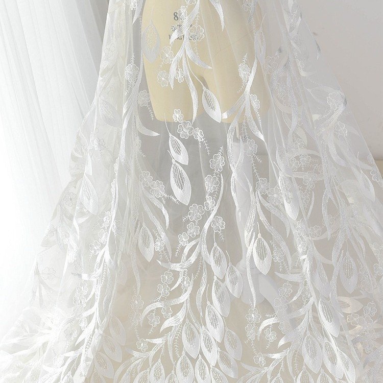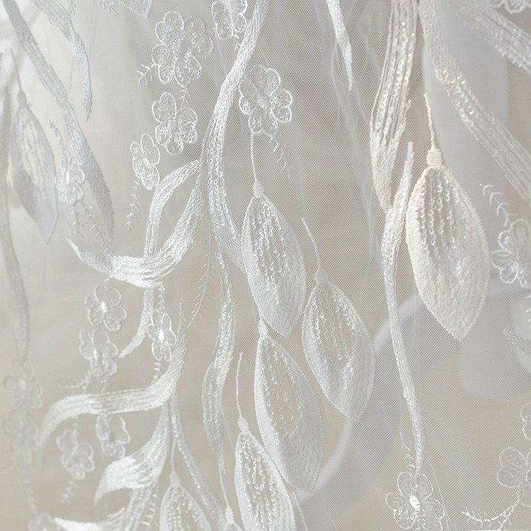 This peacock feather sequin lace mesh combines unique feather textures with shimmering sequins, creating an elegant and luxurious effect. Whether for bridal gowns or DIY handmade accessories, it adds movement and charm to every piece.