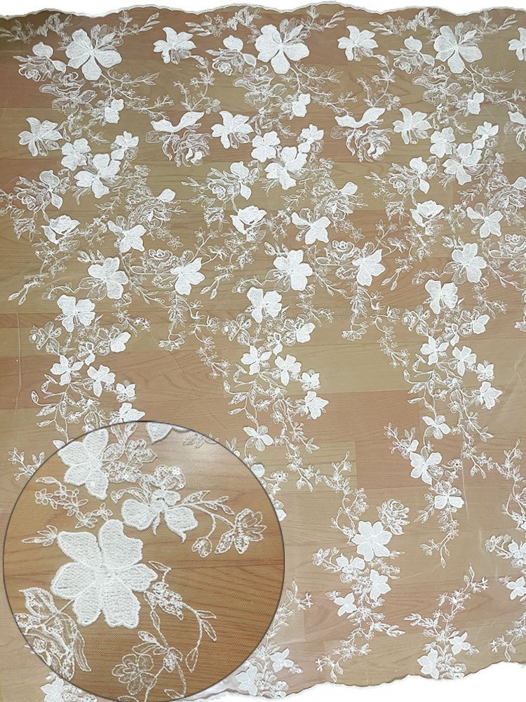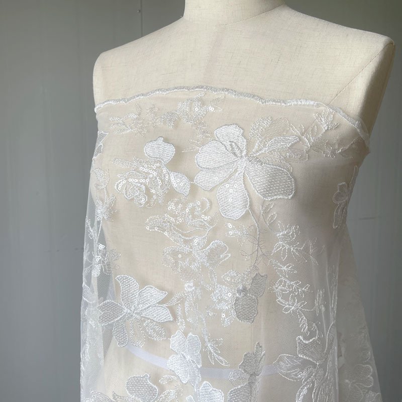 Luxury Floral Sequin Embroidery Mesh Fabric – Elegant Lace Material for Bridal Gowns, Evening Dresses, Skirts & Couture Creations